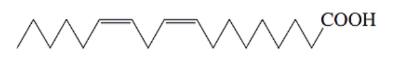Câu 1. Acid béo omega-n là cách gọi phổ biến của các acid béo không no trong các thực phẩm dinh dưỡng. Trong đó n là vị trí xuất hiện liên kết đôi C=C đầu tiên trong mạch carbon (từ nhóm $-CH_3$). Công thức khung phân tử của một acid béo không no được cho như sau: