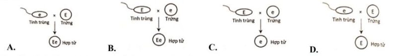 Câu 16: Một loài thực vật, tính trạng màu sắc hoa do 1 gene có 2 allele là E và e nằm ở lục lạp quy định, trong đó allele E quy định hoa đỏ trội hoàn toàn so với allele e quy định hoa trắng. Thực hiện phép lai (P): ♂ cây trắng × ♀ cây đỏ, thu được toàn bộ con lai F₁. So đó nào sau đây mô tả đúng sự thu tính của tính tự (giao tử được) và trứng (giao tử cái) để tạo thành hợp tử F₁ của phép lai trên? Biết gene này không tồn tại thành cặp allele.