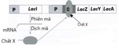 Câu 17: Hình bên mô tả trạng thái của operon Lac ở vi khuẩn E.coli trong môi trường nuôi cấy. Phần tích hình, hãy cho biết phát biểu nào sau đây là đúng?