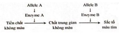 Câu 3: Một loài thực vật, màu sắc hoa là do sự tác động của 2 cặp gene (A,a và B,b) phân li độc lập. Gene A và gene B tác động đến sự hình thành màu sắc hoa theo sơ đồ dưới đây. Allele a và allele b không tạo được các enzyme tương ứng. Các cây hoa màu trắng của loài này có bao nhiêu kiểu gen?