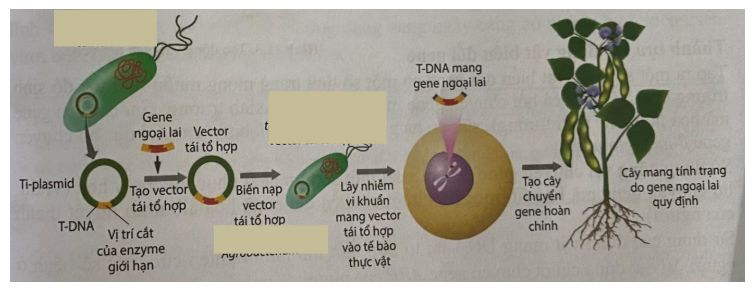 (Sơ đồ tạo thực vật biến đổi gene) Quan sát sơ đồ tạo thực vật biến đổi gene, vi khuẩn nào được lựa chọn để vector tái tổ hợp biến nạp vào?