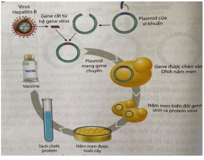Ngày nay, khi công nghệ sinh học phát triển, người ta tiến hành nghiên cứu, chế tạo các loại vaccine để phòng một số bệnh như viêm gan B, HPV, COVID -19. Hình bên là sơ đồ sản xuất vaccine phòng bệnh viêm gan B.
