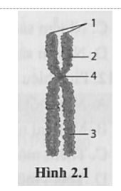 Câu 5: Các số thứ tự 1, 2, 3, 4 trong hình 2.1 chỉ thích cho các bộ phận nào của nhiễm sắc thể?