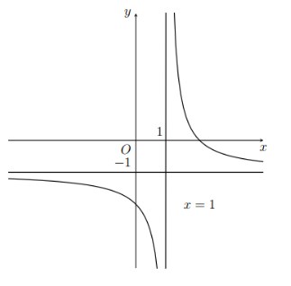 Câu 4. Đồ thị trong hình là của hàm số $y = \frac{ax+b}{x+c}$ ($a, b, c \in \mathbb{R}$).