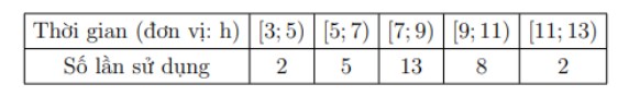 Câu 5. Bạn Minh Nhân sử dụng điện thoại thông minh để chơi game trong một ngày. Số lần bạn sử dụng điện thoại được thống kê như sau: