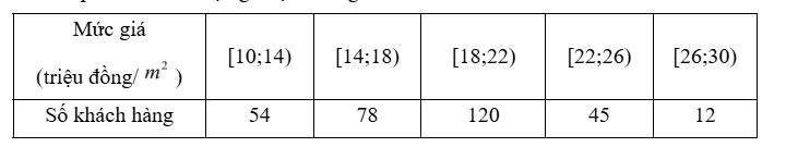 Câu 12. Một công ty xây dựng khảo sát khách hàng xem họ có nhu cầu mua nhà ở mức giá nào. Kết quả khảo sát được ghi lại ở bảng sau: