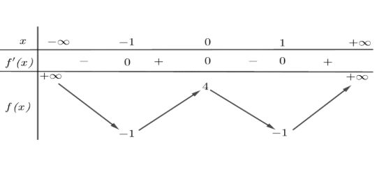 Câu 1. Cho hàm số $f(x)$ có bảng biến thiên như sau: