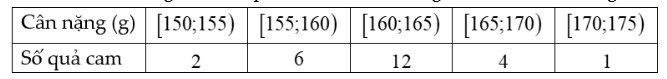 Câu 8: Kết quả khảo sát cân nặng của $25$ quả cam ở một lô hàng được cho dưới bảng sau: