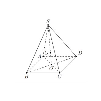 Câu 3: Trong không gian, cho hình chóp $S.ABCD$ có đáy $ABCD$ là hình bình hành tâm $O$. Gọi $G$ là điểm thỏa mãn $\overrightarrow{GS} + \overrightarrow{GA} + \overrightarrow{GB} + \overrightarrow{GC} + \overrightarrow{GD} = \vec{0}$ (tâm khối lăng thể)