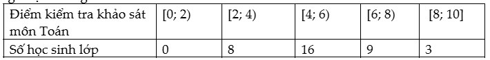 Câu 4: Điểm kiểm tra cuối kỳ I môn Toán của 36 học sinh lớp 12D1 tại một trường THPT được ghi lại ở bảng sau: