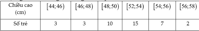 Câu 5: Chiều cao của 40 bé sơ sinh 12 ngày tuổi được chọn ngẫu nhiên ở viện nhi trung ương được nghiên cứu thống kê ở bảng dưới đây: