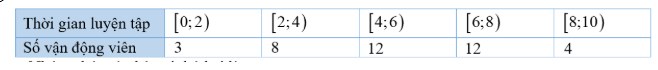 Câu 1: Thời gian tập luyện trong một ngày (tính theo giờ) của một số vận động viên được ghi lại ở bảng sau: