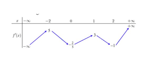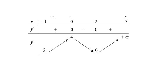 Câu 2: Xét hàm số $y = f(x)$ có tập xác định là $(-1; 5)$ và có bảng biến thiên như sau:
