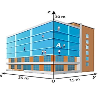 Câu 3: Một tòa nhà 6 tầng có dạng hình hộp chữ nhật với kích thước chiều dài 35m, chiều rộng 15m, chiều cao 30m. Tất cả các tầng đều cao 5m (đã tính độ dày sàn nhà của các tầng). Người ta định vị các vị trí trong tòa nhà đưa vào hệ trục tọa độ Oxyz như hình vẽ. Tòa nhà có hai cột phát wifi: vị trí $A(0; 7; 15)$, vị trí $B(35; 7; 15)$. Mỗi wifi có thể phát sóng bán kính phạm vi 25 mét. Cho biết các nhân viên: chị Hương ở tầng 1 tọa độ $(17; 0; 1)$, chị Lan ở tầng 6 tọa độ $(0; 15; 26)$, anh Ninh ở tầng 6 tọa độ $(17; 15; 26)$. Mỗi nhân viên đều sử dụng thiết bị kết nối với wifi. Mỗi kết luận sau đúng hay sai?