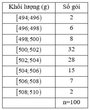 a) Khối lượng trung bình các gói đường của máy sản xuất có số liệu ghép nhóm trên là 502,22 gam.