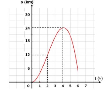 Câu 4: Bạn Tuấn tham gia giải đấu bộ năm 2024, quãng đường Tuấn đi được biểu diễn bằng hàm số $s(t) = at^3 + bt^2$ (với $a \neq 0$) có đồ thị như hình bên (trong đó $t$ là thời gian tính bằng giờ, $s$ là quãng đường tính bằng km). Khi đó, vận tốc tối đa của Tuấn đạt được là bao nhiêu km/h?