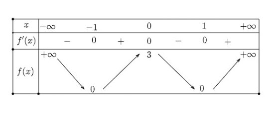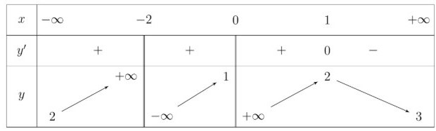 Câu 1: Cho hàm số $y = f(x)$ có bảng biến thiên như sau: