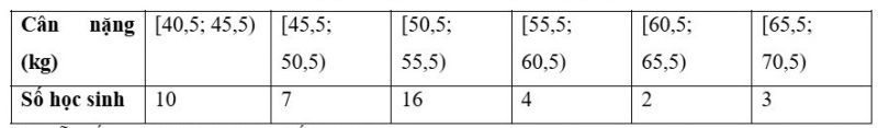 Câu 4: Điều tra cân nặng của các học sinh lớp 11D cho trong bảng sau:
