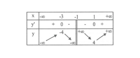 Câu 5: Bảng biến thiên trong hình dưới là đồ thị của một hàm số trong bốn hàm số được liệt kê ở bốn phương án A, B, C, D dưới đây. Hỏi hàm số đó là hàm số nào?