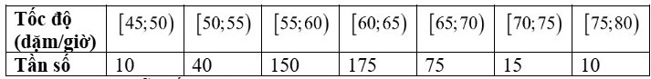 Câu 9: Các ô tô đi trên một con đường có biển báo giới hạn tốc độ là 55 dặm một giờ được kiểm tra tốc độ bởi một hệ thống ra đa cảnh sát. Bảng phân phối tần số về tốc độ được cho bởi bảng sau: