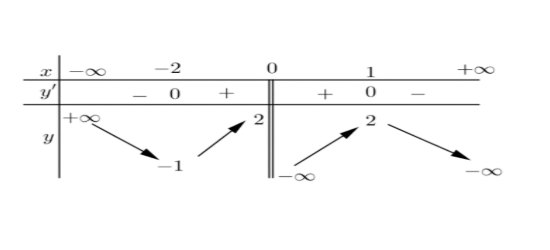 Câu 2: Cho hàm số $y = f(x)$ liên tục trên $[-3; 2]$ và có bảng biến thiên như sau