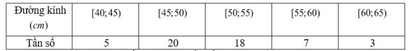 Câu 10: Có Hà thống kê lại đường kính thân gỗ của một số cây xoan đào 6 năm tuổi được trồng trong một lâm trường ở bảng sau.