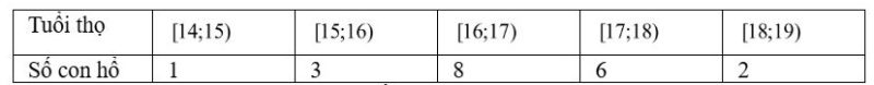 Câu 11: Một vườn thú ghi lại tuổi thọ (đơn vị: năm) của 20 con hổ và thu được kết quả như sau: