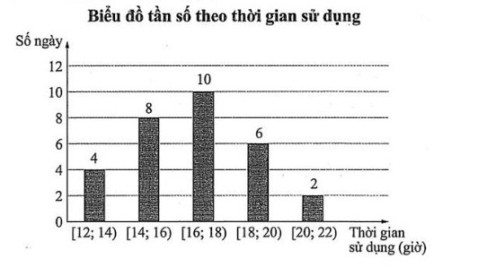 Câu 11: Bác Minh thống kê lại thời gian sử dụng điện thoại của mình từ khi điện thoại được sạc đầy pin cho đến khi pin được sử dụng hết trong 30 ngày ở biểu đồ sau: