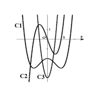 Câu 12: Cho đồ thị của ba hàm số $y = f(x), y = f'(x), y = f”(x)$ được vẽ mô tả ở hình dưới đây. Hỏi đồ thị các hàm số $y = f(x), y = f'(x)$ và $y = f”(x)$ theo thứ tự, lần lượt trùng với đường cong nào?