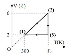 Câu 1: Sự biến đổi trạng thái của 1 khối khí lí tưởng được mô tả như hình vẽ. Cho biết $V_1= 2$ lít ; $V_2= 6$ lít.