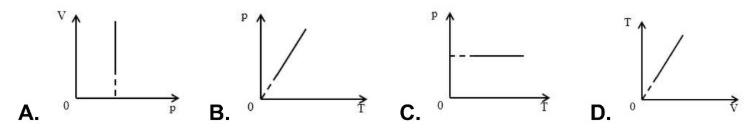 Câu 13: Xét một khối khí lí tưởng xác định thực hiện quá trình biến đổi đẳng áp. Hình nào sau đây diễn tả không đúng dạng đường đẳng áp trong hệ tọa độ tương ứng?