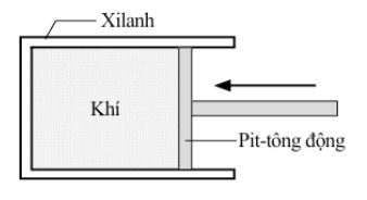 Câu 15: Hình bên mô tả một khối khí bị giữ bên trong một xilanh bởi một piston động. Thể tích của khối khí là 120 cm³ và áp suất của khối khí là p. Từ từ di chuyển piston sang trái sao cho thể tích khối khí giảm còn 30 cm³. Nhiệt độ của khối khí không đổi. Áp suất mới của khối khí trong xilanh là bao nhiêu?