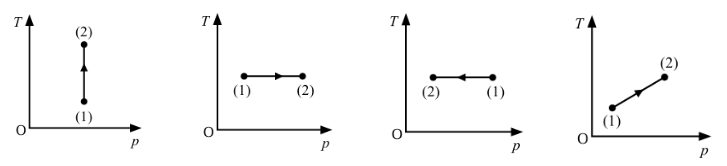 Câu 16: Một khối khí thực hiện quá trình biến đổi từ trạng thái (1) sang trạng thái (2) như hình bên. Bốn học sinh lớp 12 đã vẽ lại đồ thị này trong hệ tọa độ (T, p). Bạn học sinh nào vẽ đúng?