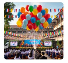 Câu 5: Khi điền ra một sự kiện ( ngày khai giáng, ngày hội…), ban tổ chức thường treo các chùm bóng bay đủ sắc màu để tạo sự vui tươi, phấn khởi cho sự kiện này ( như hình vẽ). Vào buổi sáng, khi nhiệt độ không khí là 20°C quả bóng có thể tích là 2,5 lít. Coi áp suất khí quyển trong ngày không thay đổi. Vào buổi trua, khi nhiệt độ không khí là 35°C thì thể tích của quả bóng có giá trị gần với kết quả nào nhất sau đây?