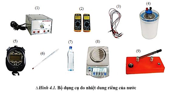 Câu 2: Trong bài thực hành đo nhiệt dung riêng của nước, dụng cụ thứ (4) trong hình vẽ là