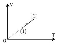Câu 2. Một khối khí xác định biến đổi từ trạng thái (1) sang trạng thái (2) được biểu diễn trên hệ tọa độ V – T như hình bên. Ở trạng thái (1), khí nhiệt độ bằng 30 °C, khối khí có thể tích 3 lít; thể tích của khối khí đó ở trạng thái (2) là 9 lít.