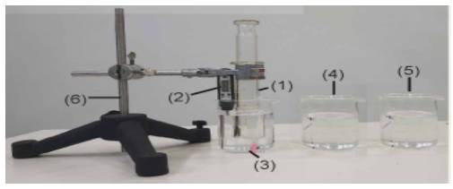 (4) Lần lượt đổ nước ấm vào cốc (4) và nước nóng vào cốc (5). Thực hiện tương tự bước 4 ở mỗi trường hợp.