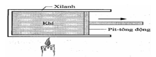 Câu 2. Khi hơ nóng chậm chậm khối khí trong một cylinder kín như hình dưới đây thì thấy piston dịch từ từ dịch chuyển sang phải.