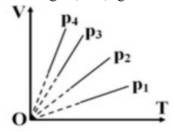 Câu 17. Trên đồ thị VOT (hình bên) vẽ bốn đường đẳng áp của cùng một lượng khí. Đường ứng với áp suất nhỏ nhất là