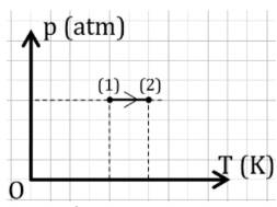 Câu 3. Một khối khí xác định biến đổi từ trạng thái (1) có thể tích sang trạng thái (2) được biểu diễn trên hệ tọa độ $p – T$ như hình bên. Nếu khối khí ở trạng thái (1) có thể tích bằng $1,6 lit$ thì thể tích của khối khí đó ở trạng thái (2) bằng bao nhiều $lit$? (Kết quả làm tròn một chữ số sau dấu phẩy)