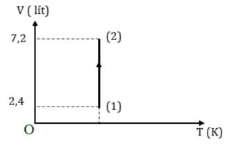 Câu 4: Một khối khí lý tưởng thực hiện quá trình được biểu diễn trên đồ thị. Biết áp suất của khối khí ở cuối quá trình là $1,2atm$.