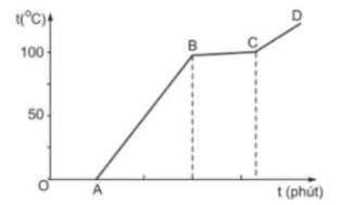 Hình bên dưới là đường biểu diễn sự thay đổi nhiệt độ theo thời gian của thí nghiệm đun nóng liên tục một lượng nước đá trong một bình không kín.