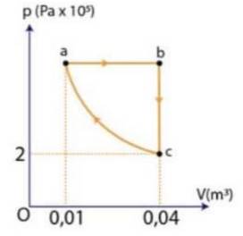 Đồ thị (p-V) ở hình bên diễn tả quá trình biến đổi trạng thái của $3,25 mol$ khí Helium lí tưởng.