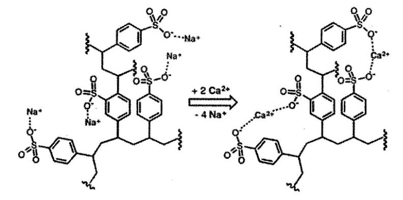 $M^{2+} +2R-SO_3X → (R-SO_3)_2M + 2X^+$ ($X^+$ là $H^+$ hoặc $Na^+$)