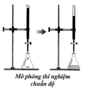 • Nhỏ từ từ dung dịch NaOH từ burette vào bình tam giác (hình bên dưới), cho đến khi dung dịch chuyển màu hồng nhạt (màu ổn định trong khoảng 30 giây) thì dừng lại.