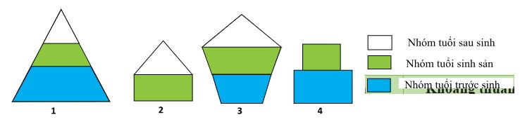 Câu 16. Tháp tuổi của các quần thể 1, 2, 3 và 4 được mô tả ở hình dưới đây.