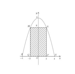 Câu 3: Một chiếc cổng có hình dạng là một parabol có khoảng cách giữa hai chân cổng là 8 m. Người ta treo một tấm phông hình chữ nhật có hai đỉnh $M, N$ nằm trên Parabol và hai đỉnh $P, Q$ nằm trên mặt đất như hình vẽ bên. Ở phần phía ngoài phông người ta mua hoa để trang trí với chi phí 200 000 đồng/m², biết $MN = 4$ m, $MQ = 6$ m. Hỏi số tiền để mua hoa trang trí là bao nhiêu? (Kết quả tính theo đơn vị triệu đồng và làm tròn đến hàng phần trăm).