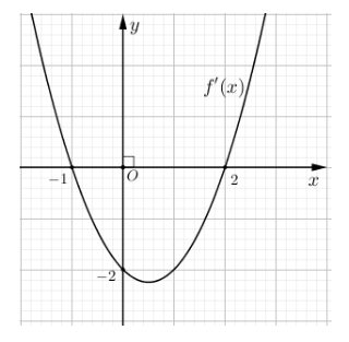Câu 2: Cho hàm số bậc ba $y = f(x)$ có đồ thị $f'(x)$ như hình vẽ.