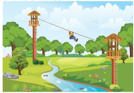 Câu 2: Trong một khu du lịch, người ta cho du khách trải nghiệm thiên nhiên bằng cách du theo đường trượt zipline từ vị trí A cao 15 m của tháp 1 này sang vị trí B cao 10 m của tháp 2 trong khuôn cảnh tuyệt đẹp xung quanh. Với hệ trục tọa độ Oxyz cho trước (đơn vị: mét), tọa độ của A và B lần lượt là (3; 2,5; 15) và (21; -7,5; 10) (hình vẽ). Xác định tọa độ của du khách khi ở độ cao 12 mét.