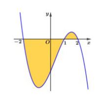 Câu 2. Cho hàm số $y = f(x)$ như hình vẽ. Biết rằng $\int_{-2}^1 f(x)dx = a$ và $\int_1^2 f(x)dx = b$. Tìm diện tích $S$ của hình phẳng được tô đậm: